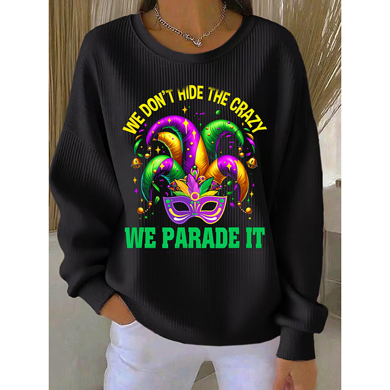 Women's Pullover Graphic Letter Warm Classic Casual Long Sleeve Crew Neck Regular Tops Home Street Dailywear Print Blue Black Green Gray Spring Fall Winter