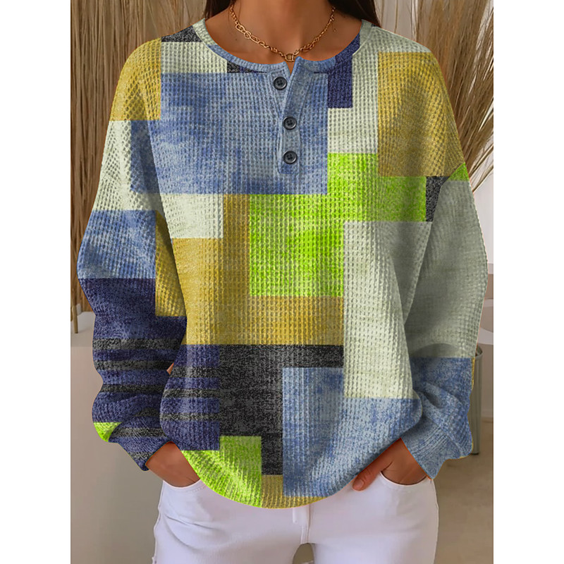 Women's Pullover Sweatshirt Graphic Geometric Fashion Casual Print Long Sleeve Crew Neck Regular Tops Casual Home Work Buttons Yellow Red Orange Green Spring Fall