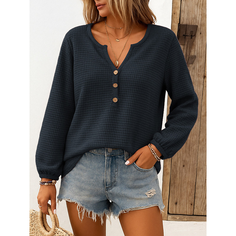 Women's Pullover Sweatshirt Plain Casual Long Sleeve Crew Neck Regular Tops Street Dailywear Buttons Pink Green Dark Blue Coffee Spring Fall Winter