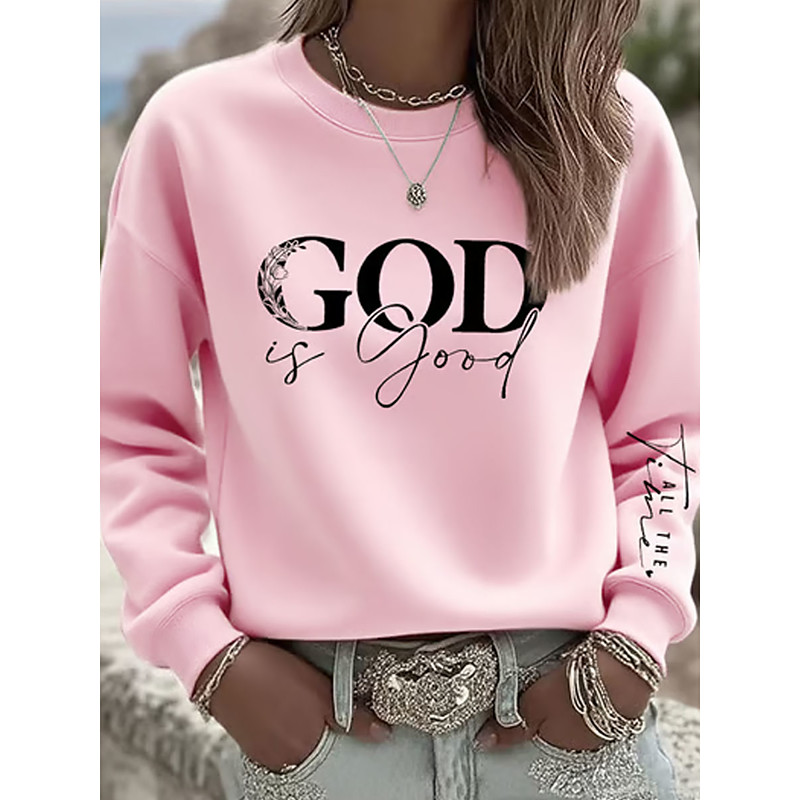Women's Sweatshirts Graphic Letter Casual Long Sleeve Crew Neck Regular Tops Casual Print Pink Red Blue Green Khaki Fall Winter