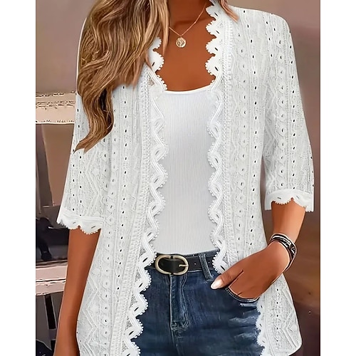 Per donna Camicia Blusa con texture Semplice Quotidiano Elegante Essenziale Manica Corta Colletto a Camicia Top Regolari Lavoro Quotidiano Ferie Bottoni Nero Bianco Primavera Autunno