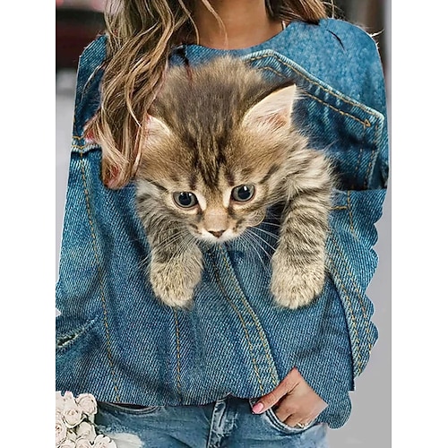 CONLEYS BLUE Sweatshirt Damen XS Grau Löwen-Print Baumwolle
