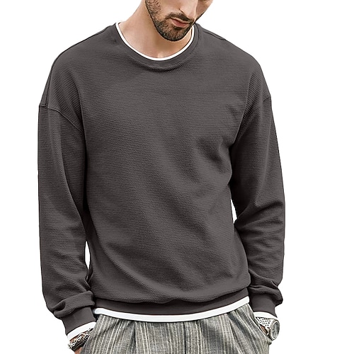 Herren Sweatshirt Pullover Kapuzensweatshirt Weinrot Denim Blue Schwarz Armeegrün Khaki Rundhalsausschnitt Einfach Patchwork Faux Zweiteiler Lässig Täglich Sport Outdoor Streetwear Cool