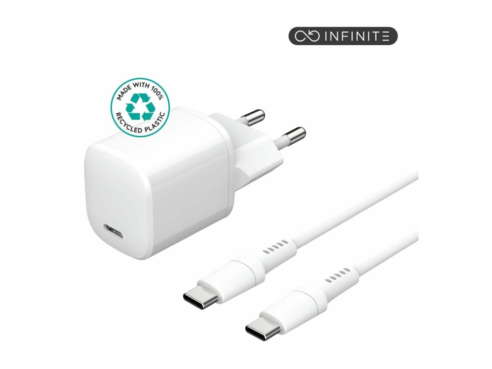 eSTUFF INFINITE - Strømadapter - EU plug, USB-C to USB-C cable, 1.5 m - 20 watt - 3 A - PD (24 pin USB-C) - hvit