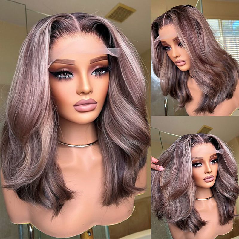 Brazilian Hair 100% Unprocessed Virgin Hair 5x5 Closure Wigs Ash Blonde Highlighted 13x4 Lace Front Human Hair Wig Short Bob Wavy Wig Natural Hairline