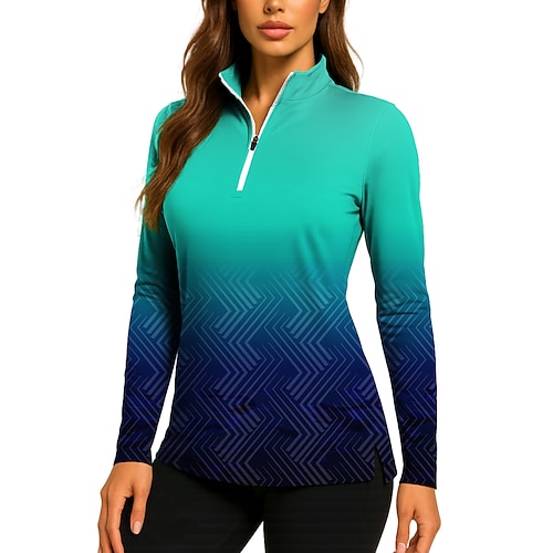 Per donna Sfumatura Top Polo da golf Maglia da tennis Manica Lunga Stampato Zip a un quarto Pullover Protezione UV Elastico Traspirante Tennis Golf Pickleball Collo alla coreana Collo con zip