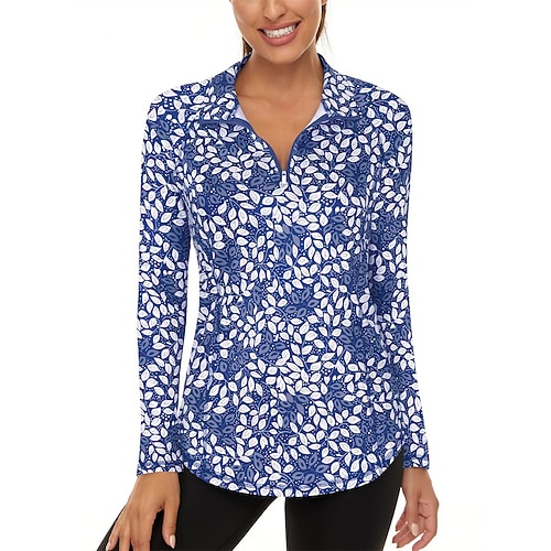 Per donna Floreale Polo da golf Maglia da tennis Maglietta da tennis Manica Lunga Stampato Zip a un quarto Pullover Protezione UV Elastico Traspirante Pallavolo Tennis Golf Colletto Mao Collo con zip