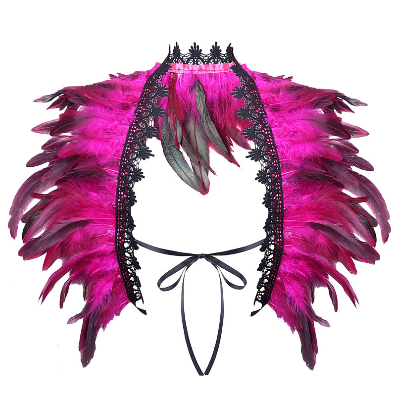 Women's Red Black Feather Cape Shawl with Lace Trim, Gothic Vampire Costume Accessories, Natural Feather Bolero Shrug