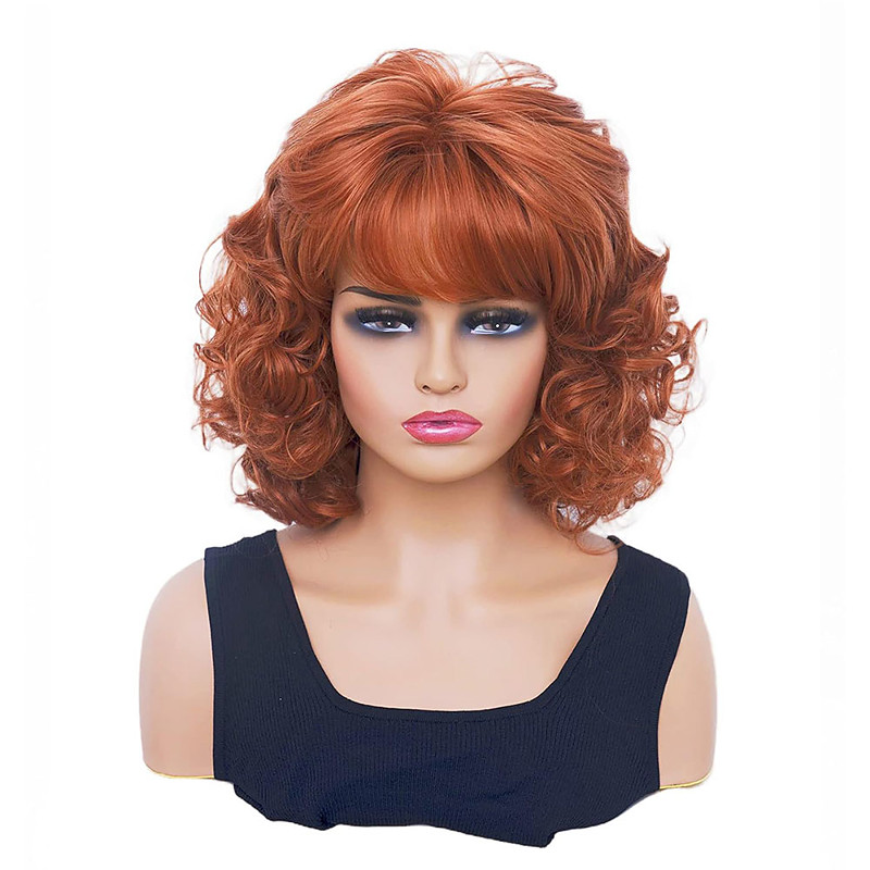Wig Short Colorful Curly Wavy Synthetic Bob Wigs with Air Bangs Natural Wigs for Women