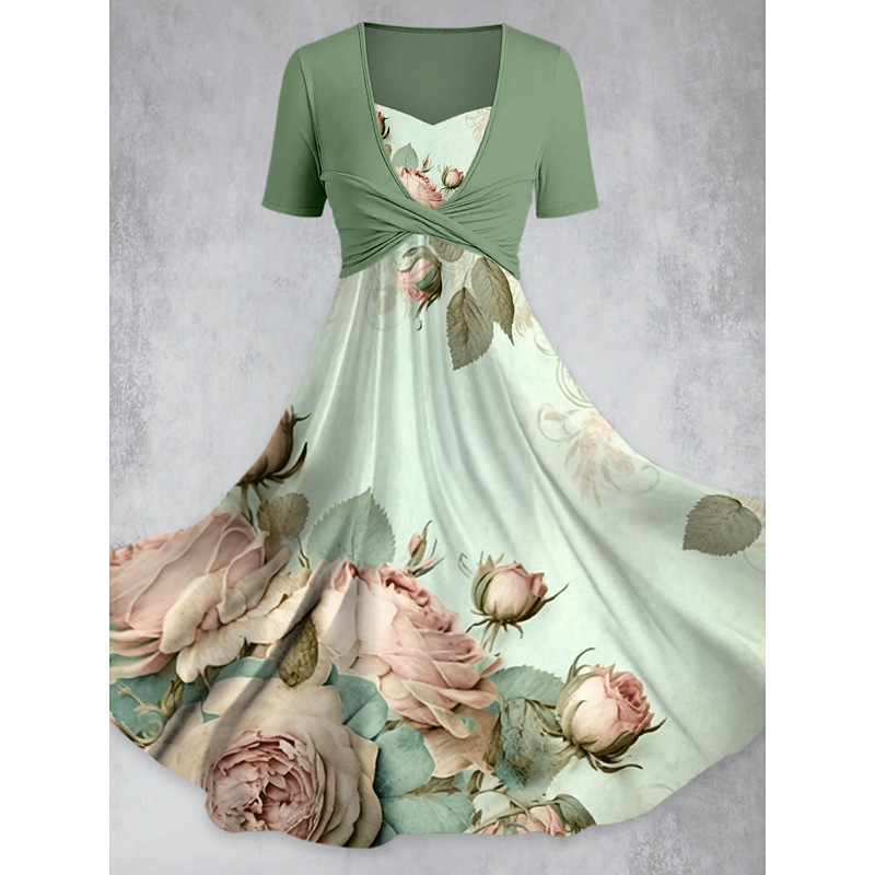 Women's Two Piece Dress Sets Midi Dress with Jacket Elegant A Line Dress Half Sleeve Casual Floral Print Crew Neck Date Pink Blue Purple Regular Fit