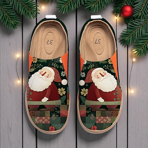 Sneakers da donna rosse a forma di gatto natalizio con dettagli a fiocco di neve: slip-on festive per le calde giornate invernali, le riunioni di festa e l'abbigliamento casual