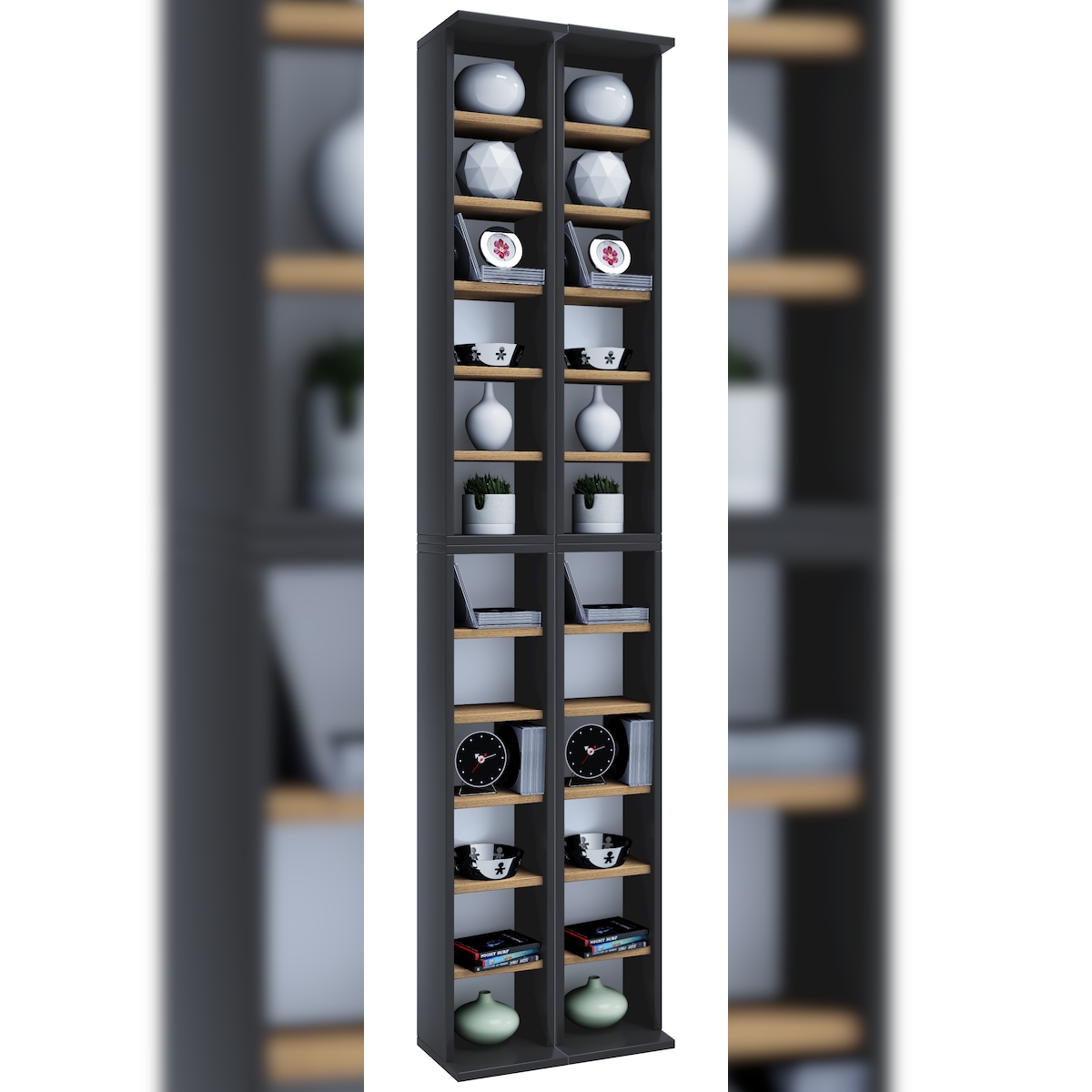 VCM CD / DVD Media Regal Almera Anthrazit / Honig-Eiche H. 183 x B. 42 x T. 20 cm