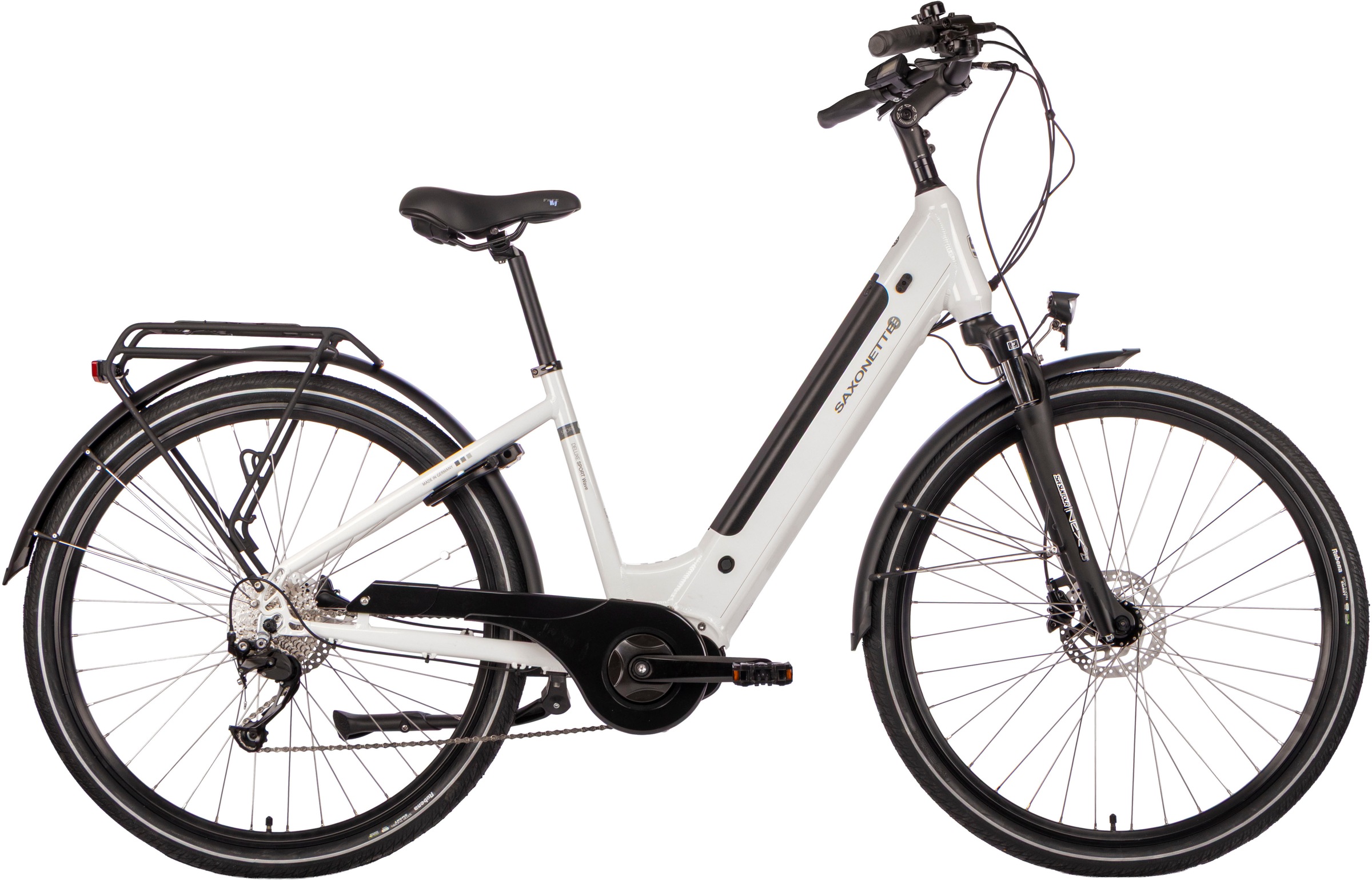 SAXONETTE "E-Bike Cityrad Deluxe Sport (Wave)" 9 Gang Shimano Alivio Schaltwerk Kettenschaltung Mittelmotor 250 W Packung, (mit integr. Akku), Elektrofahrrad für Damen u. Herren