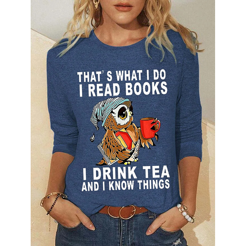 Women's T shirt Long Sleeve Owl Letter Fashion Long Sleeve Round Neck Regular Tops Daily Weekend Print Black Red Blue Green Khaki Spring Fall Spring, Fall, Winter, Prefall