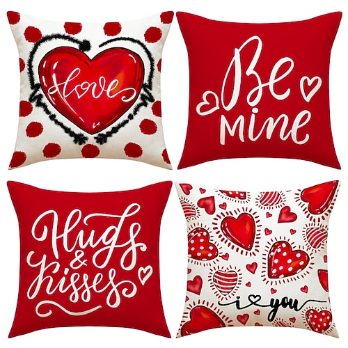 federa per cuscino con stampa a cuore per San Valentino, cuscino decorativo in lino per divano, soggiorno, perfetto per decorazioni natalizie per San Valentino, comodo cuscino da comodino e divano