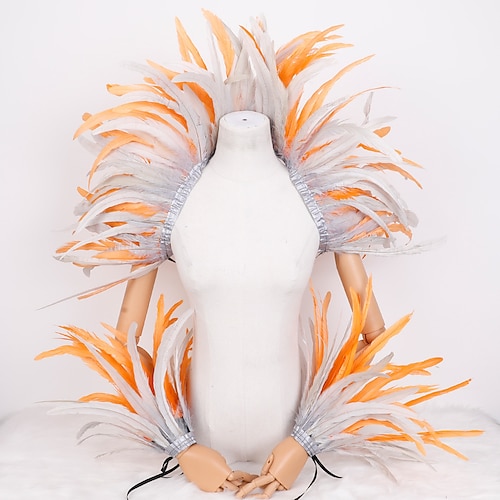Carnival 2026 Accessori Samba del Carnevale di Rio Set di Costumi con Piume Rosse e Gialle da Carnevale Mantello per Spalle e Bracciali per Mardi Gras Costume per Festa di Danza Brasiliano