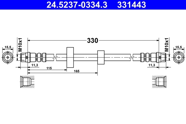 Jarruletku, Etuakseli Ate 24.5237-0334.3 - vw transporter buss iv, transporter flak/chassi iv, transporter skåp iv - OE 701 611 701