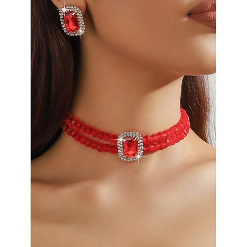 Damen-Choker aus Champagnerkristall Set aus Ohrsteckern, herzförmiger Strassschmuck, eleganter, romantischer Stil für ein Date am Valentinstag