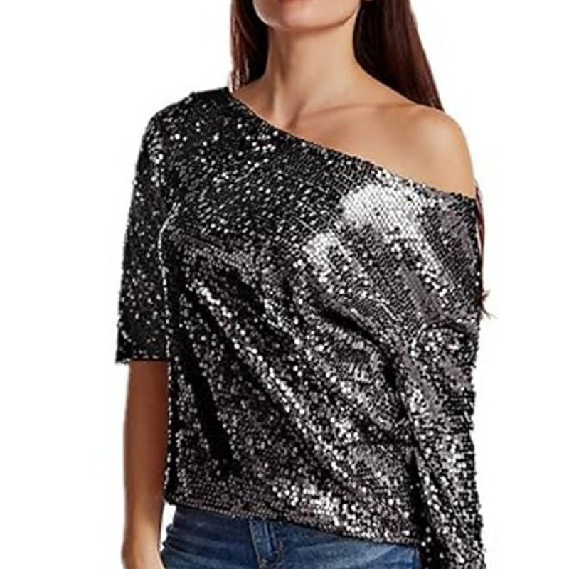 Women's Sequin Sparkly Party Glitter Sparkly Stylish Long Sleeve Cold Shoulder Regular Tops Daily Holiday Sequins Silver Black Pink Wine Gold Spring Fall
