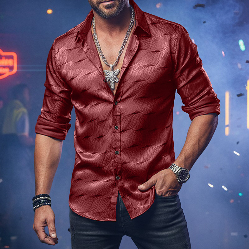 Men's Shirt Casual Shirt Button Up Shirt Prom Shirt Black Wine Purple Gold Long Sleeve Plain Textured Lapel Party Daily Jacquard Clothing Apparel Fashion Smart Casual
