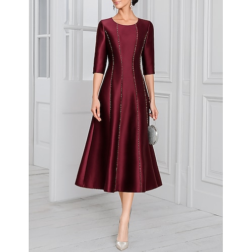 Linea ad A Lunghezza Tè Vestito da Festa Abito da Cocktail Abito da invitata a nozze Abito da cerimonia per signora Manica 3/4 Girocollo Elegante Formale Serata Formale Ricevimento di matrimonio con