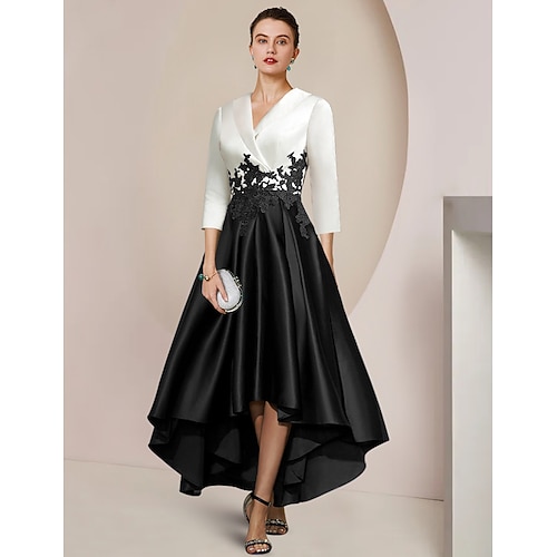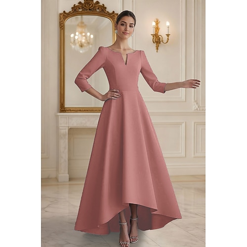 Linea ad A Asimmetrico Lunghezza alla caviglia Vestito da Festa Abito da Cocktail Abito da invitata a nozze Abito da cerimonia per signora Manica 3/4 Scollo a V Elegante Vintage Formale Raso
