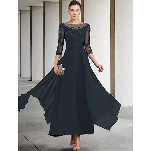 Linea ad A Lunghezza alla caviglia Vestito da Festa Abito da Cocktail Abito da invitata a nozze Abito da cerimonia per signora Manica 3/4 Collo gioiello Elegante Taglie Forti Ospite di nozze