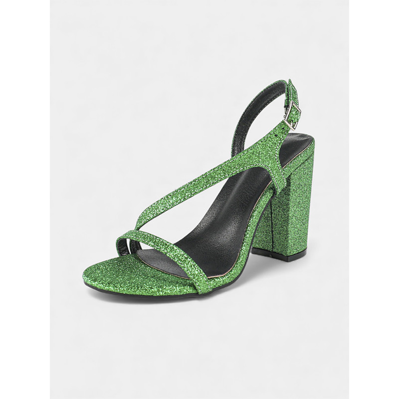 Women's Glitter Block Heel Party Sandals - Sparkly Strappy Open-Toe Heels for New Year's Eve, Holiday Celebrations Night Out