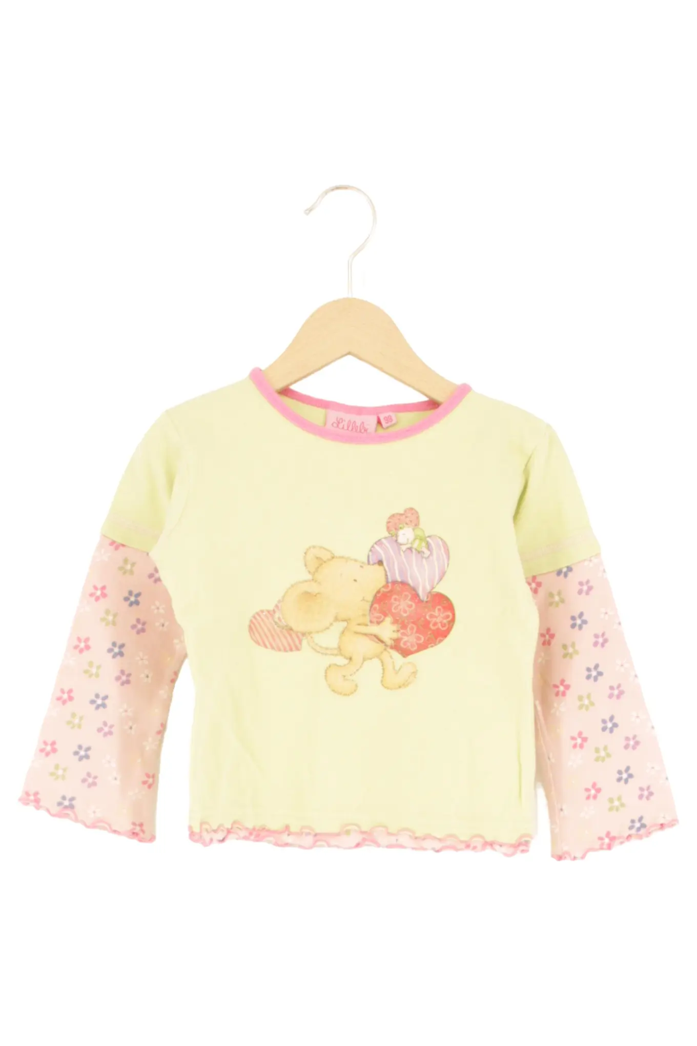 LILLEBI Langarmshirt Kinder 98 Grün Rosa Bärenmotiv