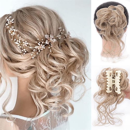 Unordentlicher Dutt lockig gewellte Kunsthaar-Haargummis Verlängerungshaarteile für Frauen Dutt-Perücke Kralle im Dutt unordentliche Chignon-Haarverlängerungen (12h24#hellgoldbraune Mischung