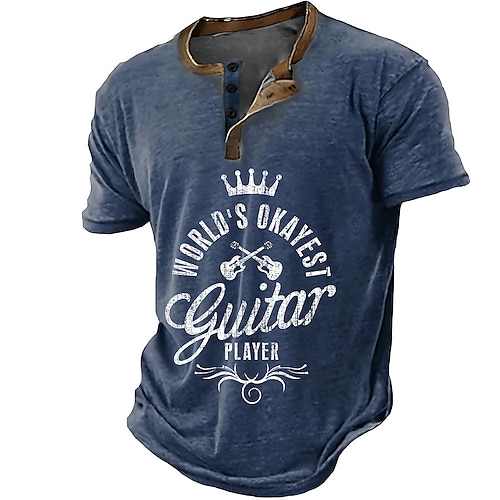 Per uomo Festival musicale Maglietta Maglia Henley Manica Corta Designer Retrò Vintage Henley Casuale Quotidiano Streetwear Estate Primavera Tutte le stagioni Nero Verde Blu marino Henley Maglietta