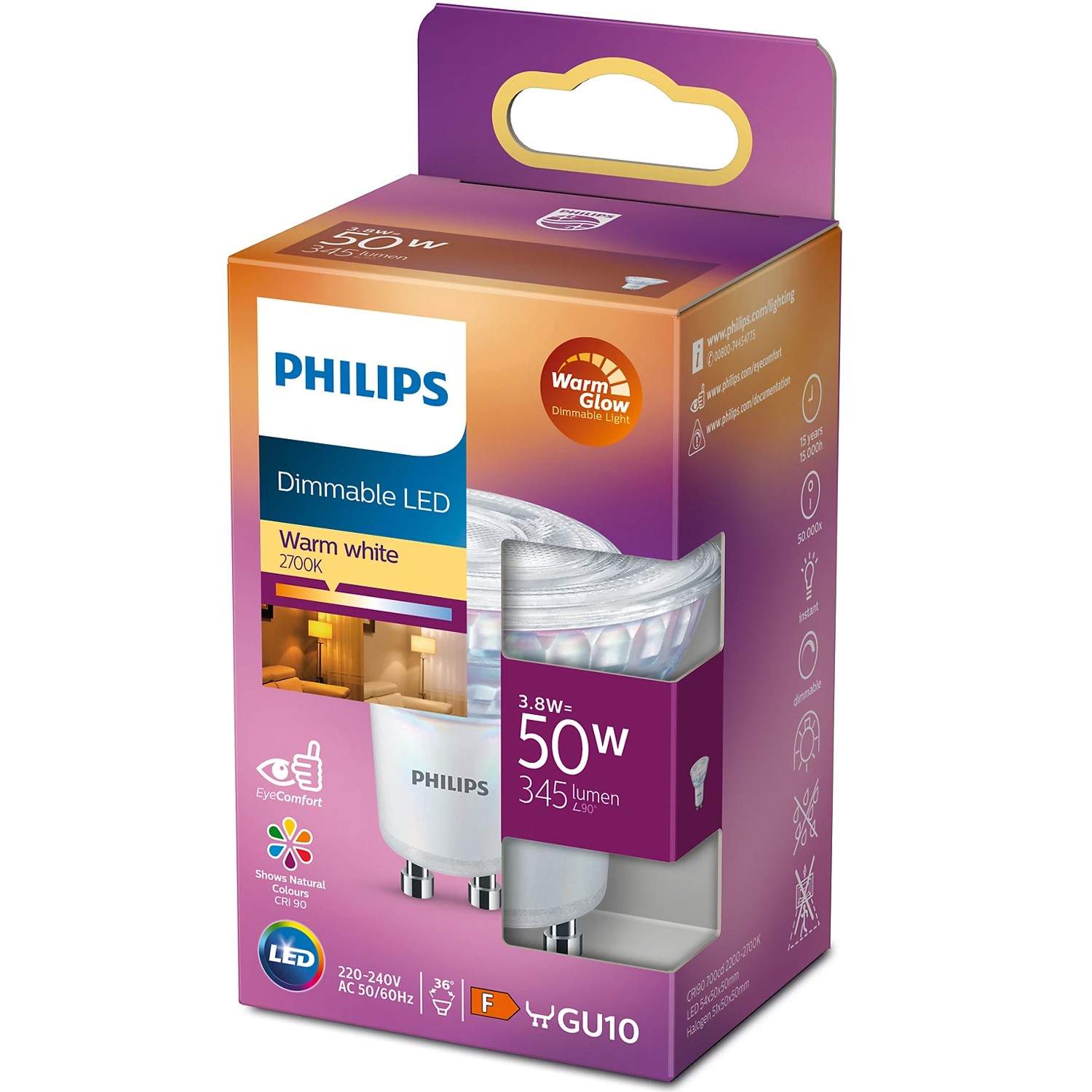LED GU10 Spot 3,8W (50W) Dimbar WarmGlow 345lm