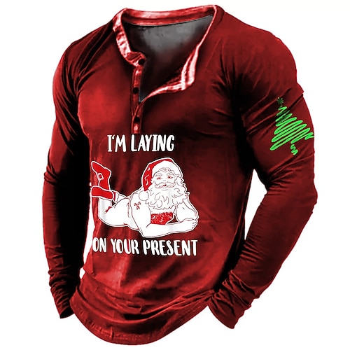 natale uomo divertente natale henley t shirt babbo natale lettera lettere lettera stampa sport moda quotidiano stampa 3d henley manica lunga strada casual quotidiano rosso blu scuro grigio manica