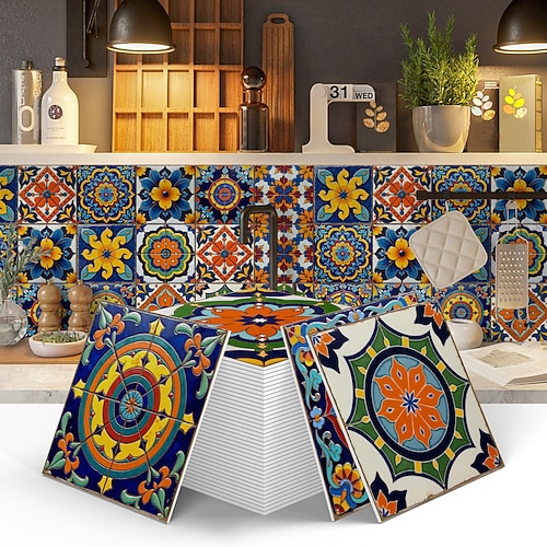 12 adesivi per piastrelle da 6 pollici, autoadesivi rimovibili, staccabili, piastrelle marocchine Talavera, paraschizzi, impermeabili, per mobili da bagno, scale, decorazioni per la casa