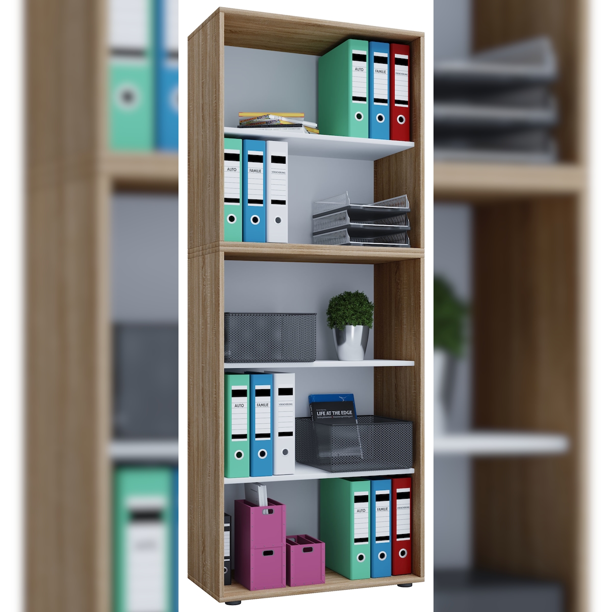 VCM Büroregal & Bücherregal Lona Sonoma-Eiche (Sägerau) B. 70 x H. 184 x T. 37 cm