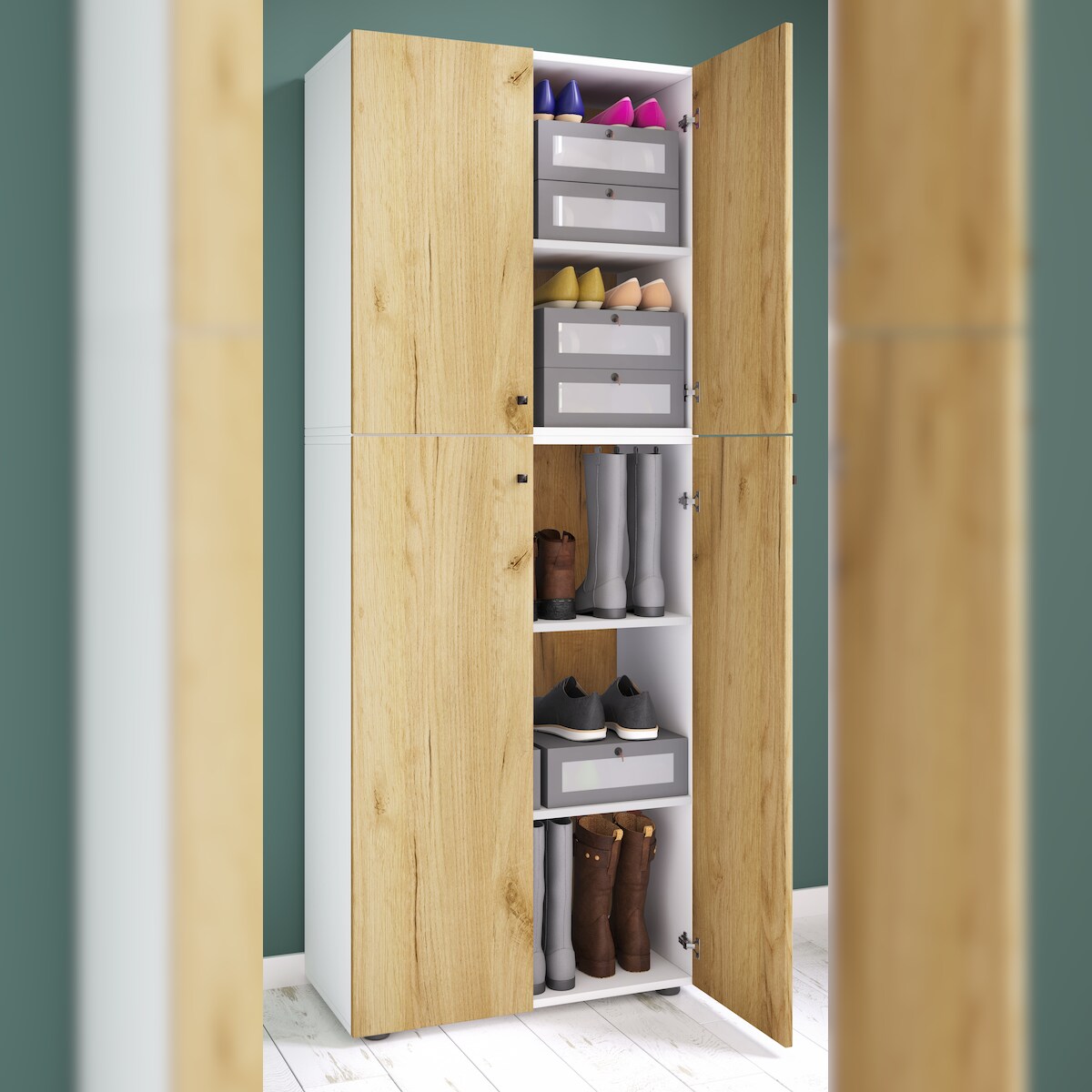 VCM Schuhschrank Lona Weiß / Honig-Eiche B. 70 x H. 184 x T. 40 cm