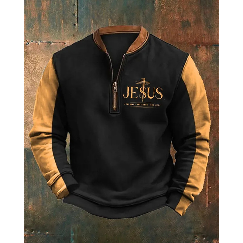 Men's Color Block Quotes Sayings Sweatshirt Fashion Streetwear Daily Classic Long Sleeve Quarter Zip Outdoor Going out Festival Black White Printing Fall Designer S M L XL 2XL 3XL