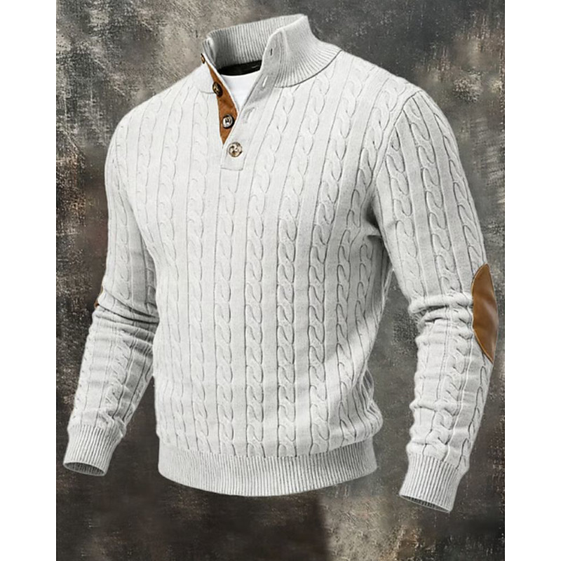 Men's Sweater Knit Sweater Knitted Pullover Ribbed Knit Regular Tops Buttons Knitted Color Block High Neck Fashion Streetwear Casual Daily Wear Clothing Apparel Fall Winter Black White M L XL