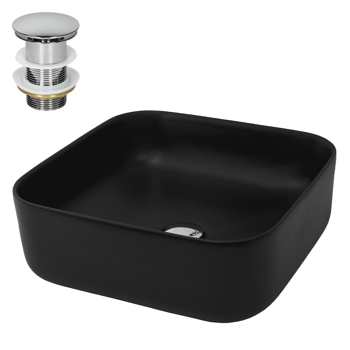 LuxeBath Waschbecken inkl. Ablaufgarnitur ohne Überlauf 39,5x39,5x14 cm Schwarz aus Keramik