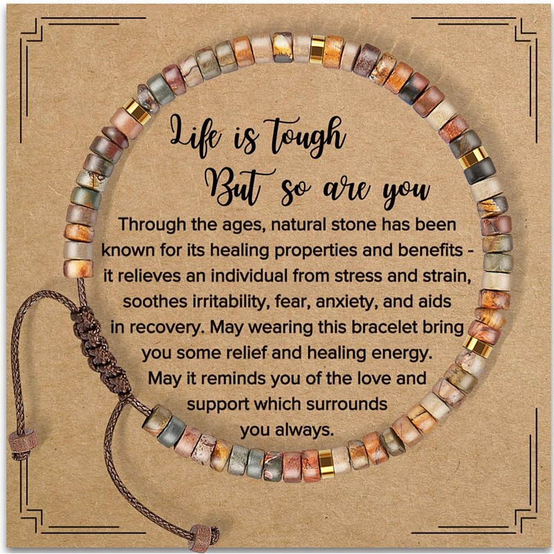 Xmas Gifts for Women Mom Her, Healing Natural Stone Bracelets - Get Well Soon Gifts for Women Best Friends Sister Girls - Life is Tough But So are You Bracelet Valentine's Day Gift for Her