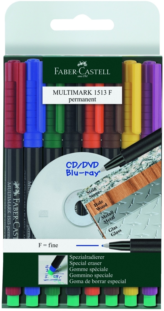 FABER CASTELL CD-Marker Multimark wasserfest ca. 0,6 mm 8 Farben Etui Packung mit 5 Stück
