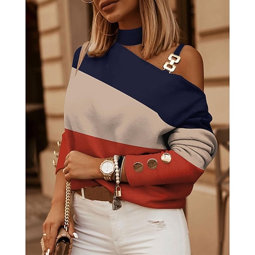 Per donna Felpa pullover Top casual Manica Lunga Top Athleisure Autunno A righe Di tendenza All'aperto Jogging Corsa abbigliamento sportivo Abbigliamento sportivo Nero Rosso Blu