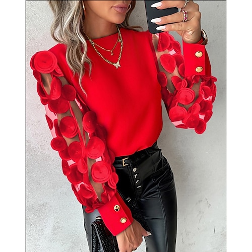 Pasqua Per donna Camicia Elegant Raso/Satin Blusa Floreale Attivo Elegante Manica Lunga Girocollo Top Regolari Quotidiano Ferie Uscire Pizzo Patchwork Blu Rosso / nero Nero Rosso Primavera Autunno