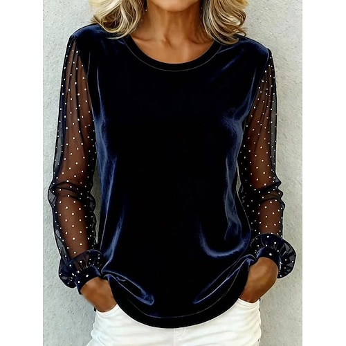 Per donna Velluto Elegante Essenziale Manica Lunga Top Regolari Blu Nero Rosa Vino Oro Autunno Inverno