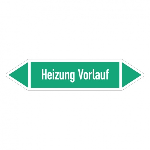 Aufkleber I RKZ-Etikett Heizung Vorlauf,DIN 2403,grün/weiß,ab Ø 90mm,440x100mm,2/Bogen
