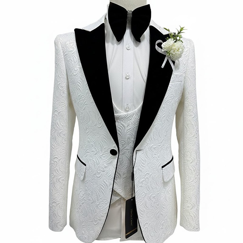 Men's Business Winter Wedding Suits Four Season Peaked Lapel White Business Luxury Solid Colored Classic Tailored Fit 3 Piece Single Breasted One-button