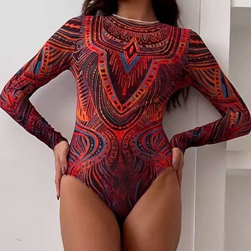 Per donna Costume da bagno Costumi da bagno One Piece Boho Elastico Manica Lunga Costume da Bagno Surf Spiaggia Vacanze Estate