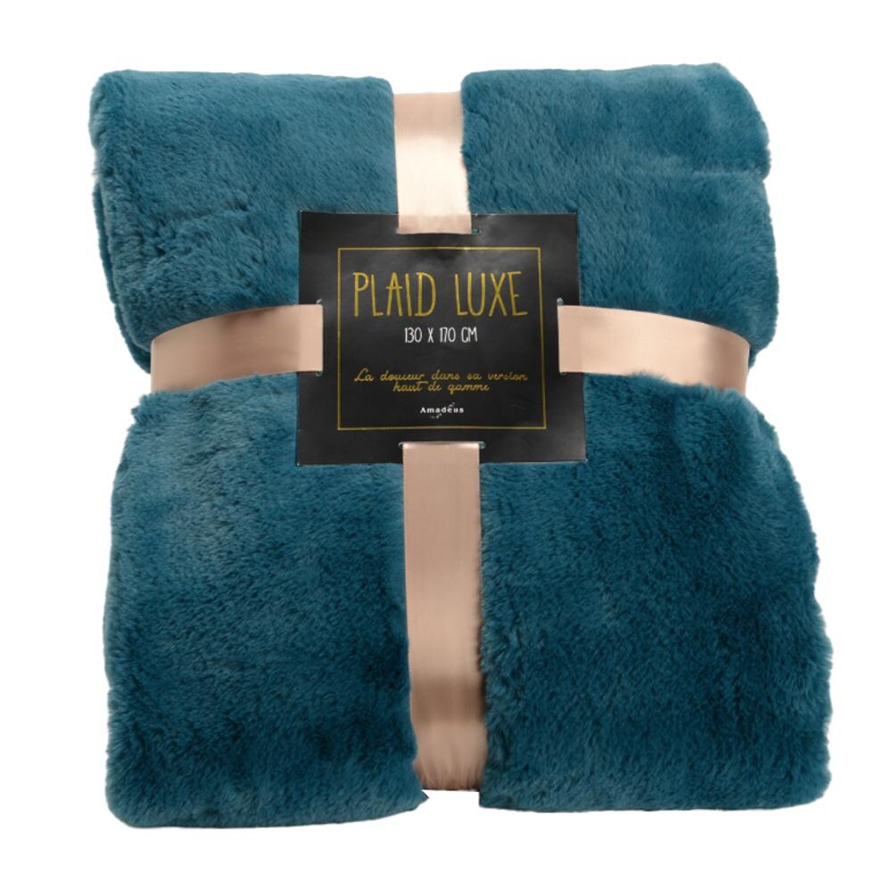 Plaid Luxe smaragdgrün 170x240 cm - Blau Polyester Amadeus 170x0.01 cm