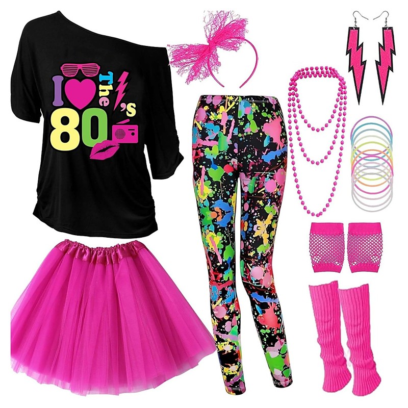 Disco 1980s Outfits T-shirt Leggings with Accessories Retro Fancy Dress Women's Carnival Costume Masquerade Party Evening Pride Parade Pride Month Adults More Accessories Leggings T-shirt