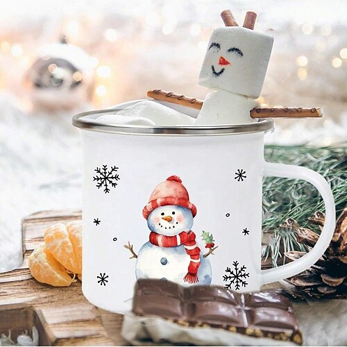 Tazza da caffè natalizia, piccola tazza smaltata con scritta Buon Natale, tazza stagionale con Babbo Natale e pupazzo di neve, tazze da caffè e tè per le feste, regali per i colleghi, regalo di
